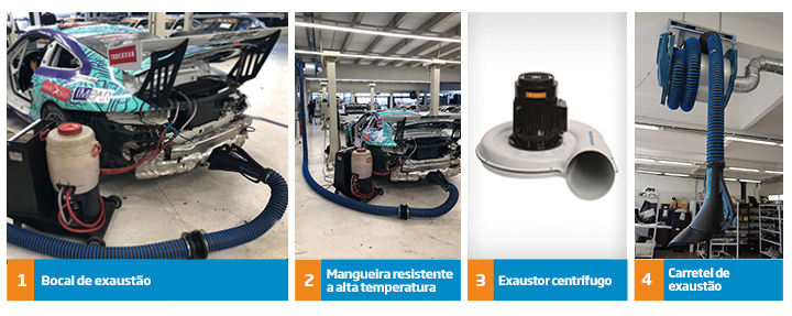 “Sempre que há necessidade de ligar veículos com motor de combustão em ambientes fechados, existe a necessidade de sistemas de extração de gases de escape. É difícil notar a rapidez com que as emissões dos veículos atingem níveis tóxicos dentro de um ambiente fechado, mas sabemos que é uma questão de minutos para que o local fique saturado de poluentes tóxicos. Os gases libertados por veículos em funcionamento são considerados nocivos e cancerígenos. A exposição repetida a estes gases, mesmo em níveis mais baixos, pode ocasionar problemas de saúde ao longo do tempo”. Explica Claudio Visibeli, engenheiro com mais de 12 anos de experiência no segmento de exaustão industrial e responsável pelo atendimento da Porsche Império GT3 Cup.