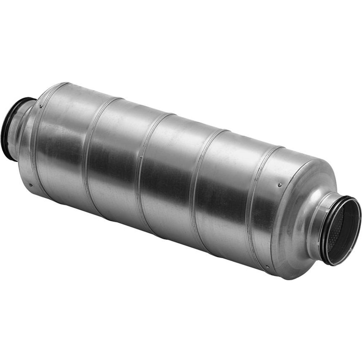 Model LT100 100mm (3.94in) discharge silencer for reducing exhaust noise while maintaining efficient airflow.