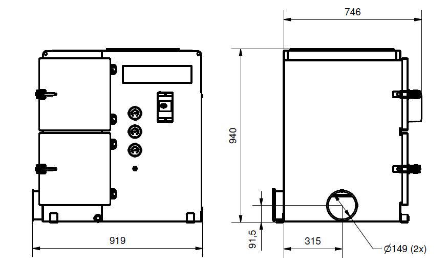 Dos entradas Ø150 mm con conexión de abrazadera