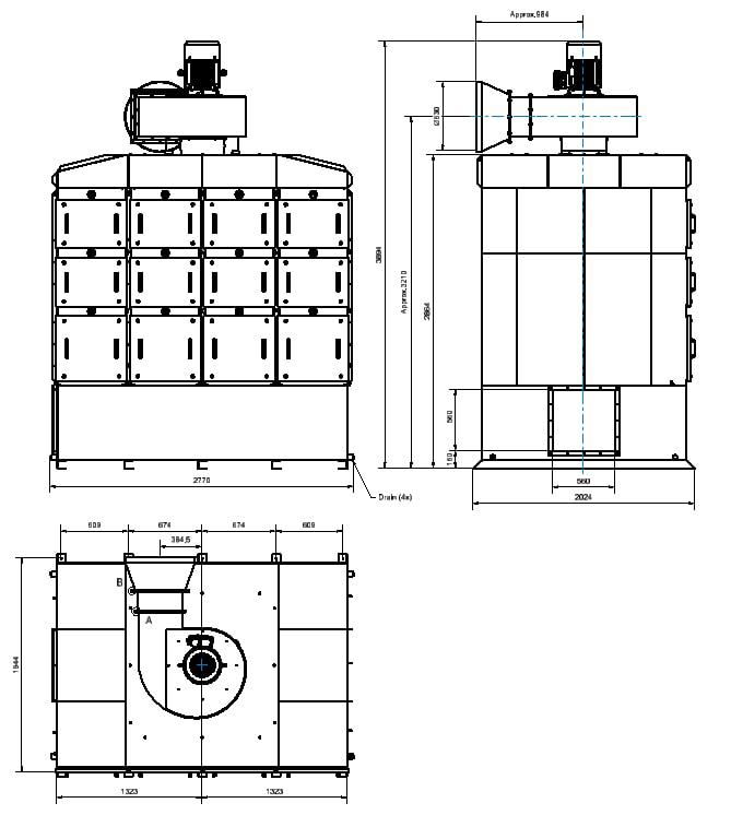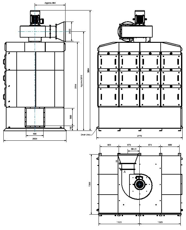 OSF 4x3000, Entrée bride 560x560mm gauche. Drainage 4 x 1 ½" Femelle.
