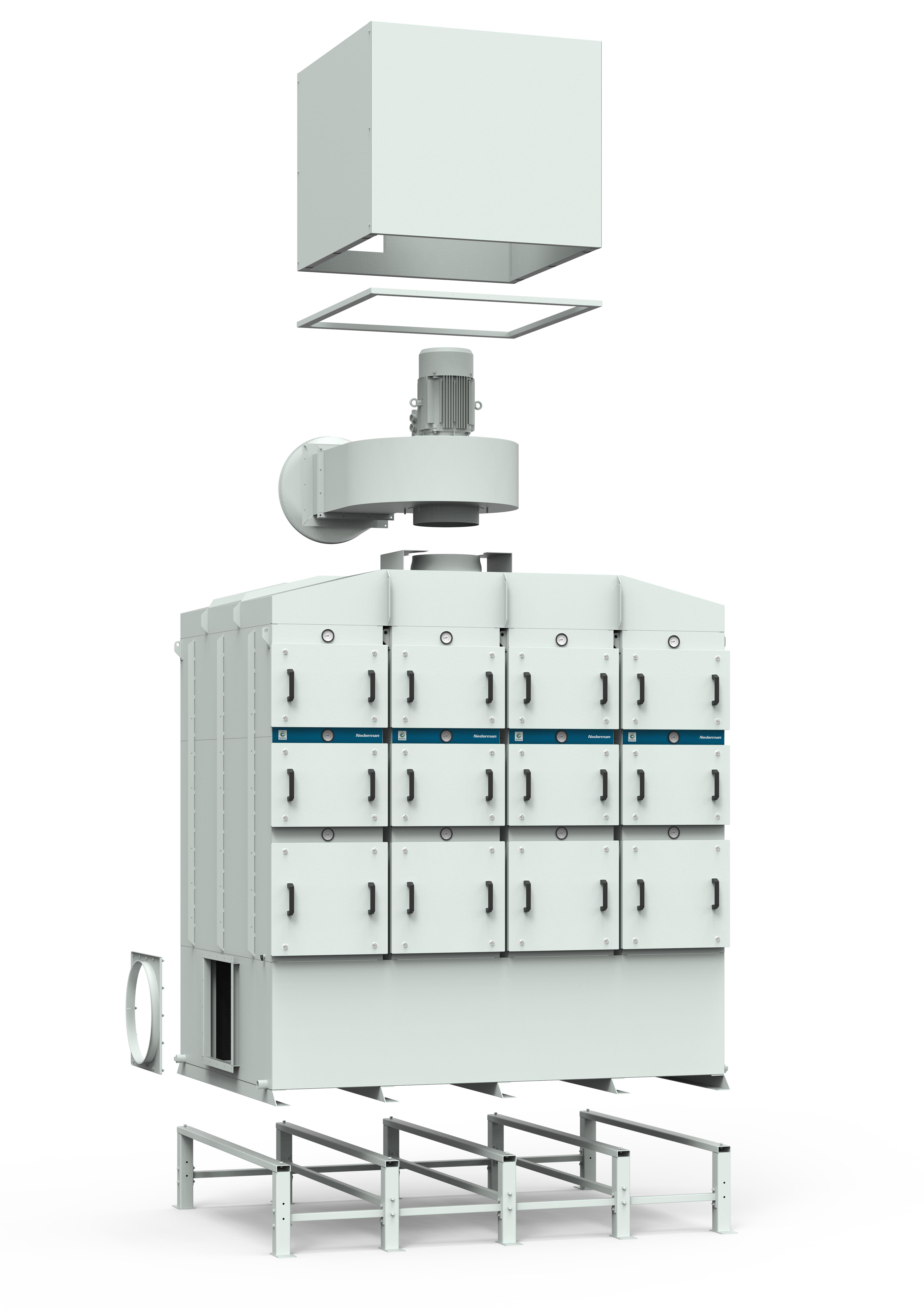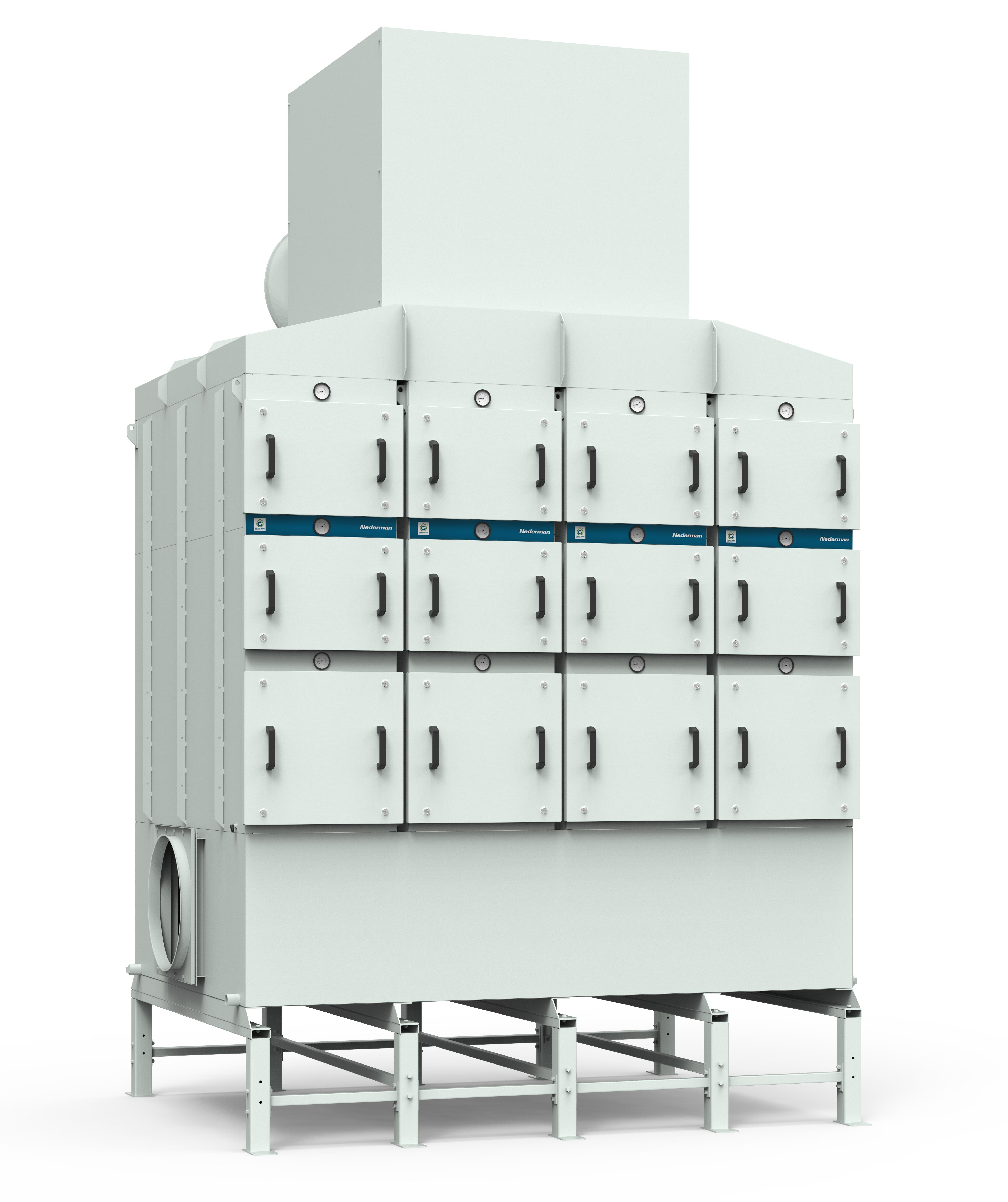 Les filtres pour brouillard d'huile Nederman OSF sont conçus pour gérer de grandes quantités de brouillard d'huile en fonctionnement continu. Ils sont développés en mettant l'accent sur la filtration à haute efficacité avec un faible coût d'entretien. Nederman OSF 4x3000 SM a en standard trois étapes de filtration, les deux premières étapes se composent de cassettes de filtre avec la technologie FibreDrain ®. La troisième étape consiste en un filtre HEPA H13 avec un rendement de 99,95% pour MPPS selon EN1822. Toutes les unités Nederman OSF sont faites pour une utilisation avec un pré-filtre.