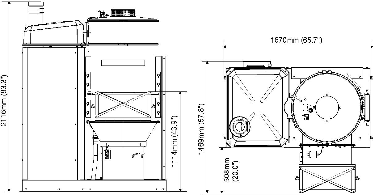 Frequency controlled compact high vacuum dust collector unit to be used for combustible dust applications. Typically 2-10 users.