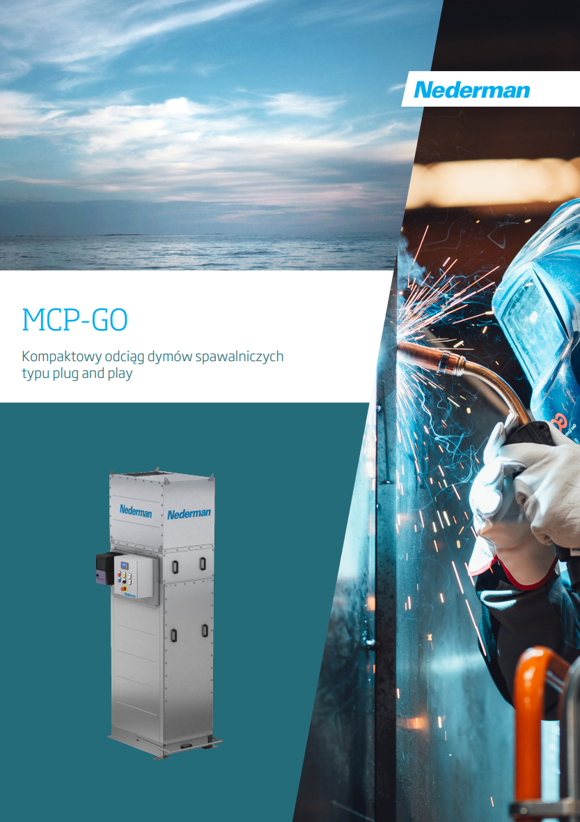 MCP-GO firmy Nederman to uniwersalny system odciągu dymów, doskonale odpowiadający na potrzeby sektora nieustannie inwestującego w automatyzację spawania i zaawansowany sprzęt. MCP-GO oferuje zaawansowaną technologię filtracji w prostym, szybkim w instalacji i łatwym w użyciu pakiecie, zapewniając niezawodne rozwiązanie w zakresie czystego powietrza do procesów spawania ręcznego, robotów i cobotów spawalniczych oraz cięcia termicznego.