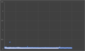 Os resultados dos testes mostram uma redução substancial da exposição do dentista e técnicos de saúde aos aerossóis. Os gráficos abaixo ilustram esta redução mostrando a concentração de aerossóis e o tamanho das partículas sem qualquer solução de controlo de aerossóis a vermelho e com a solução Nederman de controlo de aerossóis a azul.