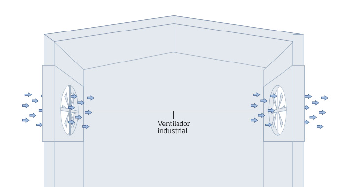 Quando instalados em paredes e tetos com acesso ao ambiente externo, os ventiladores industriais fazem a troca de ar entre o ambiente interno e o externo.