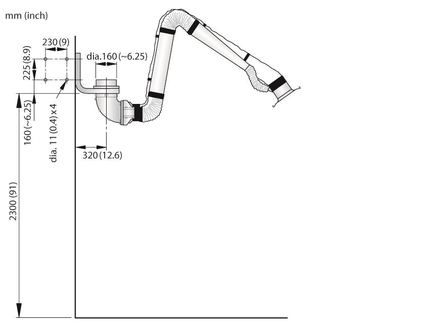 Braço extrator de poeiras adequado para indústrias aonde a higiene é prioritária